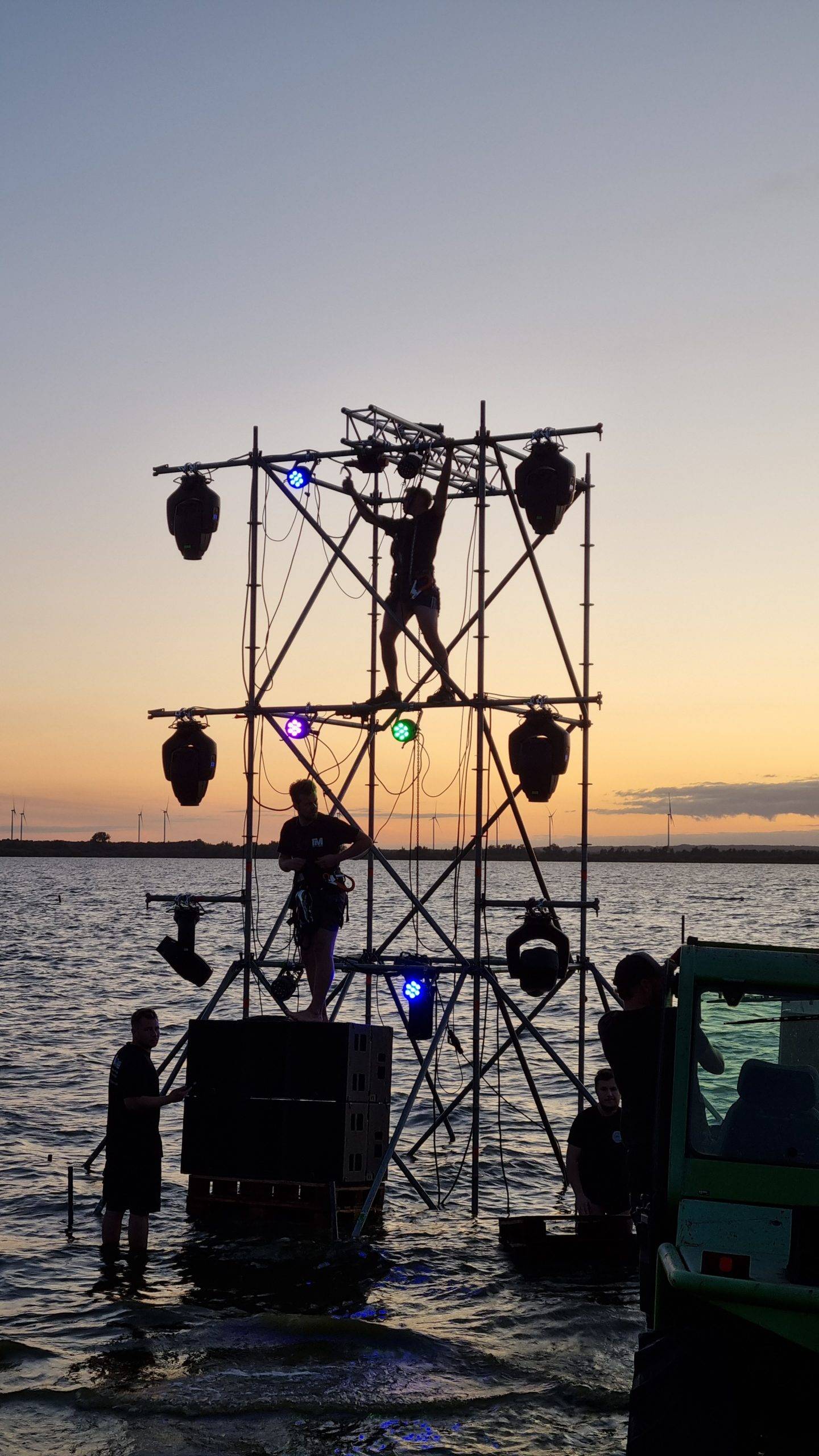 Für das diesjährige Dümmerbrand durften wir ein ganz besonderes Projekt umsetzen: eine Bühne direkt auf dem Wasser. Mit dieser Konstruktion entstand nicht nur ein technisches Highlight, sondern auch ein visueller Ankerpunkt, der tausende Besucher am See faszinierte.